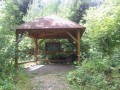 Pristresek bez stolu a lavic, podlaha vysypana oblazky.