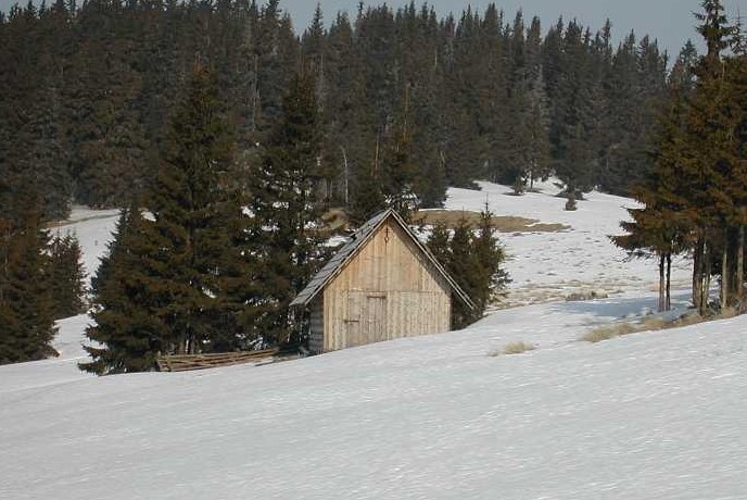 Pohled na boudu z přístupu směrem od Andrejcovej. (24.01.2004 - 23:29:07)
