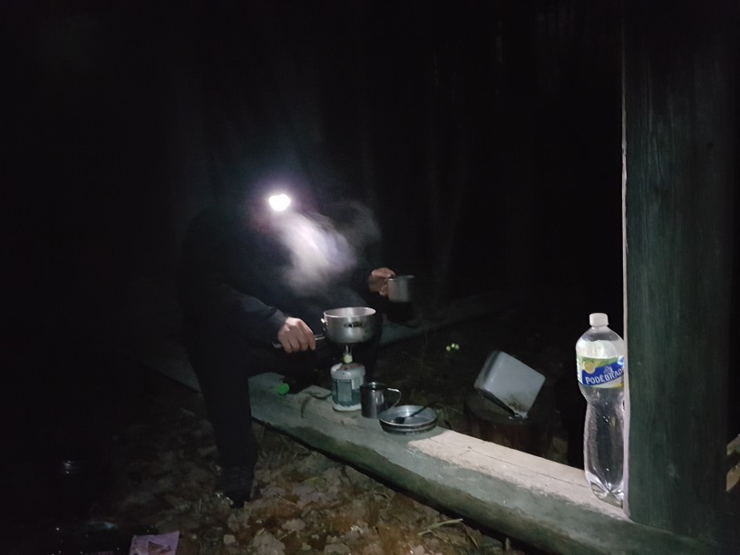Večerní vaření pod střechou krmelce. Zásoba soli volně k dispozici. :-) ©VA 2023 (24.11.2023 - 22:33:49)