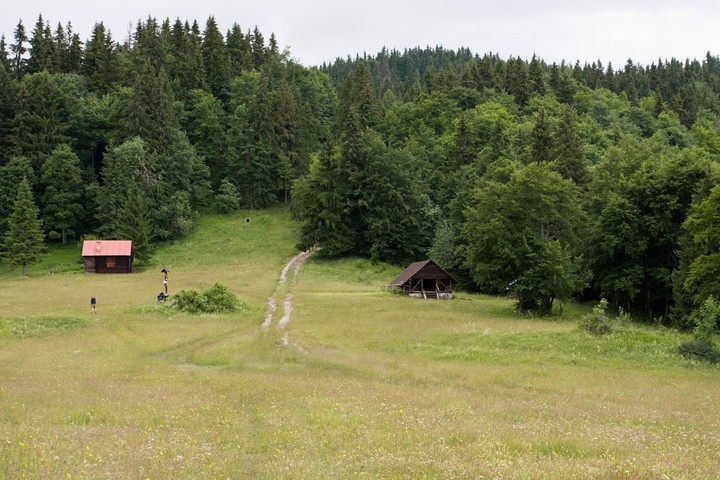 Polana před srubem s přístupovou cestou a lesáckou chatou. ©VA 2009 (27.01.2009 - 23:01:17)