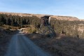 Posed od cesty, hráz horní nádrže elektrárny Dlouhé stráně.